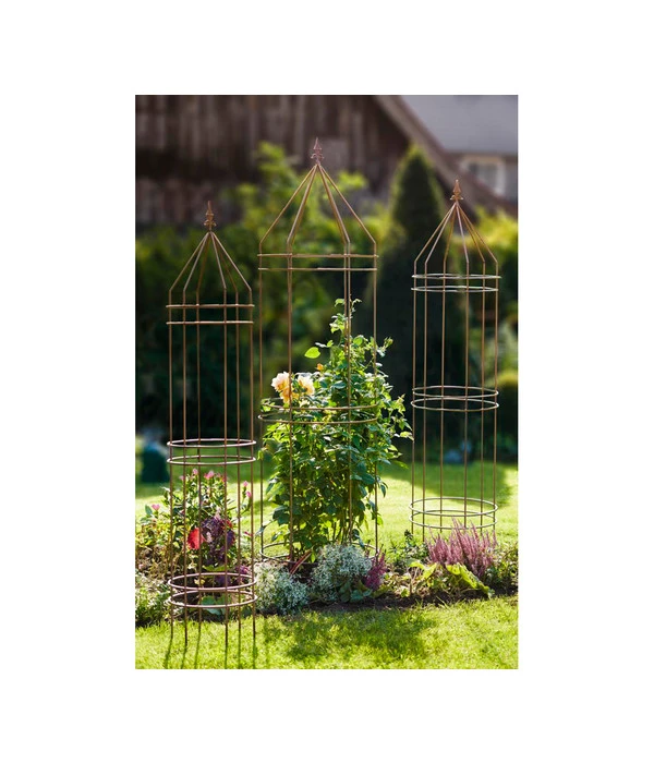 Zierlich und doch von enormer Standfestigkeit, in modern schlichter Form und mit nostalgischem Touch, praktische Rankhilfe und ausdrucksstarkes Schmuckelement für den Garten – kein Wunder, dass sich Deko-Elemente wie der Dehner Premium Obelisk Odin immer größerer Beliebtheit erfreuen. Und da haben wir noch nicht einmal die Blütenpracht erwähnt, die nach kurzer Zeit den Dehner Premium Obelisk Odin schmücken wird, wenn Sie ihm zum Beispiel eine Kletterrose als Gesellschaft geben. Auch Gartenarchitekten setzen in den letzten Jahren wieder verstärkt auf die Wirkung solcher Schmuckelemente, da diese ein spannendes Spiel mit verschiedenen Höhen erlauben. Vor allem in kleinen Gärten, in denen kein Platz für hohe Büsche oder Bäume ist, kann der Dehner Premium Obelisk Odin eine interessante Blickfangwirkung ausüben. In größeren Gärten werden Obelisken gerne als Mittelpunkt lauschiger Nischen genutzt oder als prachtvolle Pflanzensäulen rechts und links eines Gartenwegs.