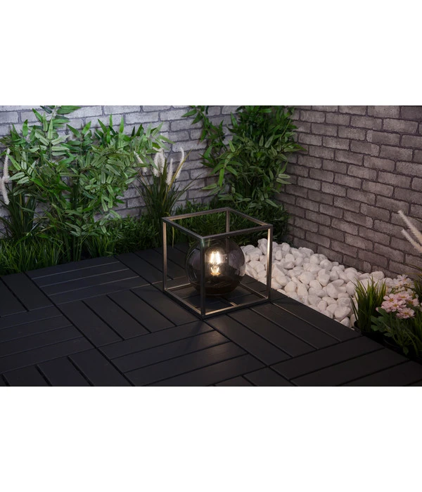 Die Solar-Glaskugel Siero von Dehner besticht durch ihre edle Optik und das elegante Rauchglas, aus dem die Kugel gefertigt wurde. Das quadratische Metallgestell der Leuchte rundet das Erscheinungsbild ab. Die Glaskugel lässt sich hervorragend mit Ihrer Bepflanzung kombinieren und sorgt so für ein perfekt abgestimmtes Ambiente. Machen Sie Ihren Garten oder Ihre Terrasse zu einem noch gemütlicheren Ort der Erholung und Entspannung für sich und Ihre Liebsten mit dieser schönen und dekorativen Solarleuchte!