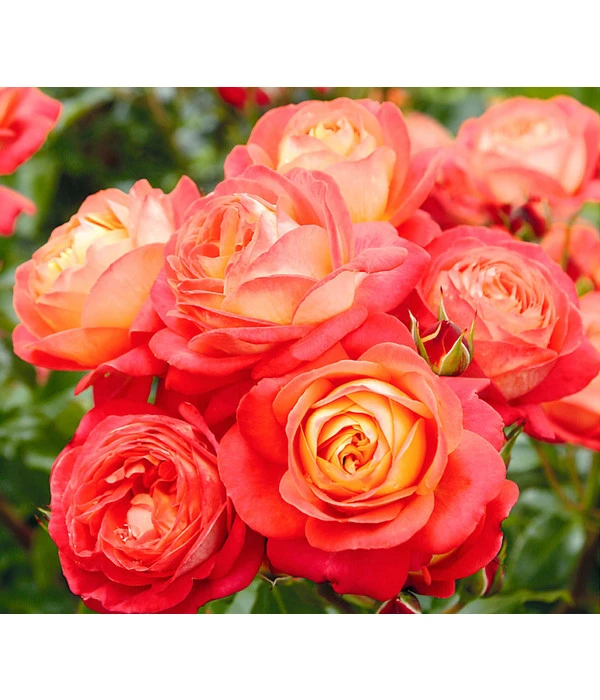 Diese weltweit beliebte Schnitt- und Gartenrose bezaubert mit ballförmigen Blüten in der eleganten Farbkombination Cremeweiß mit Kirschrot und einem lieblichen Duft. Das Laub ist lederartig und stark glänzend, der Austrieb rötlich.