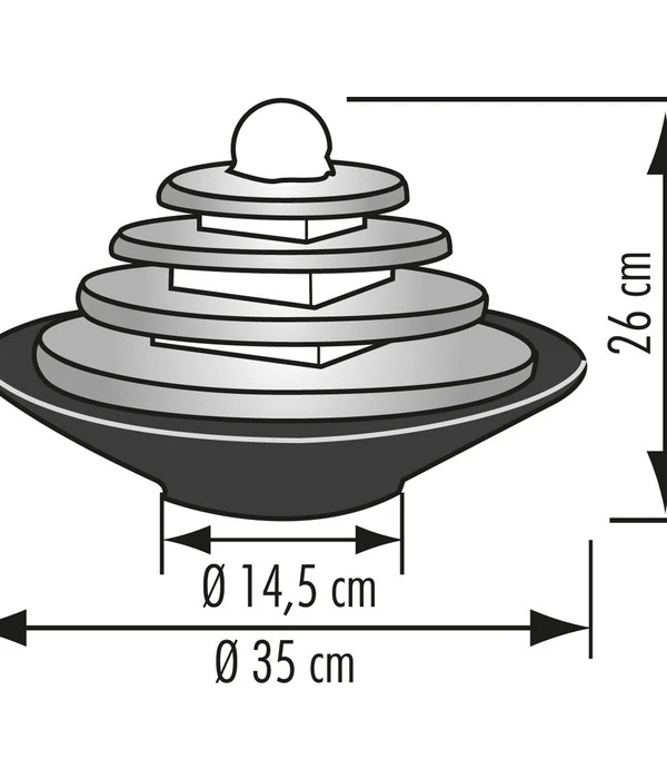 Verspielt und unablässig plätschert das Wasser von einer Etage zur nächsten, Sie lauschen den sanften Geräuschen und entspannen dabei unmerklich. Der Alltag tritt in den Hintergrund, weil Sie den Weg des Wassers mit den Augen verfolgen. Dabei fällt Ihnen auf, wie kunstvoll die Schieferterrassen im Seliger Zimmerbrunnen Tao gearbeitet sind. Die Orangencalcit-Kugel oben ist ein echtes Highlight und dreht sich leicht mit der Wasserbewegung. Seine schwarze Schale schließlich vereint all die wundervollen Einzelteile zu einem attraktiven Ganzen – dem Seliger Zimmerbrunnen Tao. Ein äußerst harmonisches Arrangement, das Sie immer so unterhält, wie es Ihnen gerade gefällt. Denn dank des praktischen 3-stufigen Schalters können Sie einfach nur das Wasser laufen lassen, die Wasserspiele inklusive Beleuchtung genießen oder einfach alles ausschalten. Das ist genau nach Ihrem Geschmack? Dann gönnen Sie sich den Seliger Zimmerbrunnen Tao – Sie haben es sich verdient!